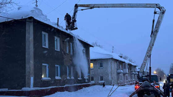 Крыша жилого дома в Кемерово получила повреждения из-за скопления снега