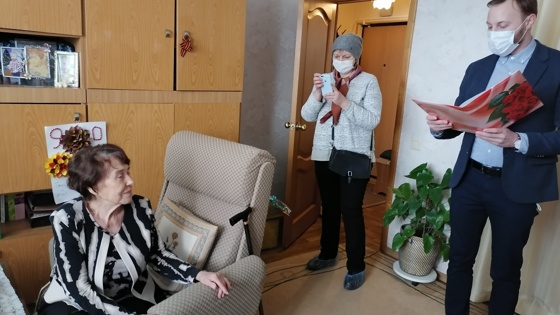 25 февраля представители управы района Крюково Крюков Сергей, Кудряцева Ольга, депутат МО Крюково Зотов Михаил, председатель Совета ветеранов Колышкина Нина пришли в гости к Анне Ильиничне Афанасьевой, чтобы поздравить с 90 летним юбилеем. В торжественной обстановке Анне Ильиничне вручили поздравление от Президента Российской Федерации Владимира Путина, подарок и цветы. Поздравляя с юбилеем, гости выразили признание и уважение за многолетний добросовестный труд. Искренне пожелали Анне Ильиничне крепкого здоровья, поддержки и внимания близких людей, благополучия и долголетия.