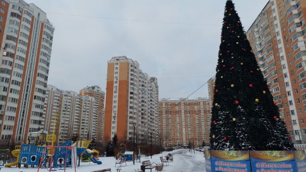 Работы по установке новогодних елей провели в Московском