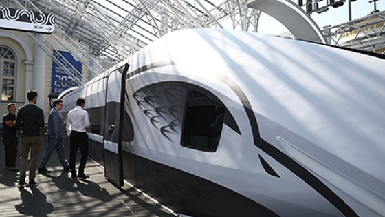 МОСКВА, 30 августа. /ТАСС/. Макет головного вагона российского высокоскоростного поезда "Белый кречет" показали на выставке "Станция Манеж. Московский транспорт 2030" в Москве.