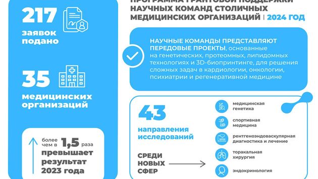 «В 2022 году мы создали программу поддержки научных разработок в медицине. Ежегодно выделяем гранты на внедрение новых методов диагностики, лечения и реабилитации. За это время поддержали 142 прорывных исследования столичных медиков. Реализованы и тестируются в клинической практике такие инновационные решения, как диагностика инсульта при помощи искусственного интеллекта, система оценки биологического возраста и скорости старения организма, методика оценки риска ментальных расстройств», — рассказал Мэр Москвы.