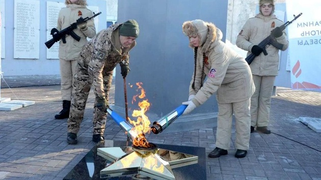 В честь знаменательного события у обновленного монумента собрался весь поселок. Из Омска приехали представители региональной власти, общественники и краеведы. В память о героях-земляках Вечный огонь доверили зажечь бойцу Юнармии, прадед которой воевал во время Великой Отечественной, и ветерану спец-операции, защищавшему рубежи России в наши дни.