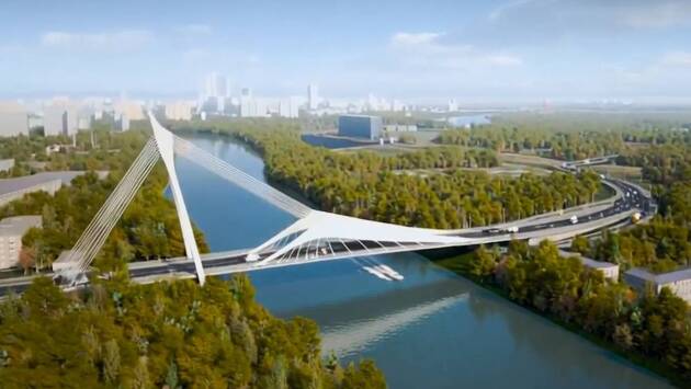 Длина моста составит 250 метров, а ширина — почти 30 метров. «Здесь будет четыре полосы движения, по две в каждую сторону, а для пешеходов построят тротуары», — написал Собянин.