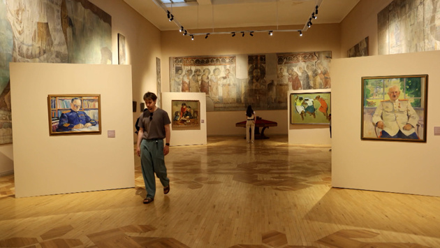 У армянского художника Мартироса Сарьяна тоже немало полотен о войне. В это тяжелое время он ждал с фронта сына Лазаря. Пережитое отразил в своем творчестве. Также на выставке представлены портреты маршала Баграмяна и адмирала Исакова. С ними Сарьян был знаком лично.