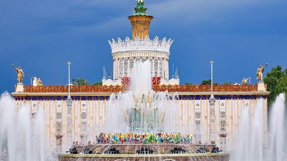 Фонтан "Дружба народов" задумывался при строительстве как главный фонтан ВДНХ, символизируя процветание СССР как многонациональной страны. Площадь бассейна составляет почти 4 тысяч квадратных метров, а 800 струй фонтана поднимаются до 20 метров в высоту.