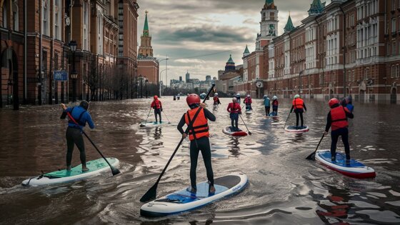 По наблюдениям очевидцев, уровень воды на улицах достиг примерно 15 сантиметров — именно столько, судя по затопленному легковому автомобилю, видно на видео. Несмотря на небольшие неудобства, например, сложно держать телефон на сапборде, пользователи считают такой способ передвижения вполне приемлемым, пишет 360.ru.