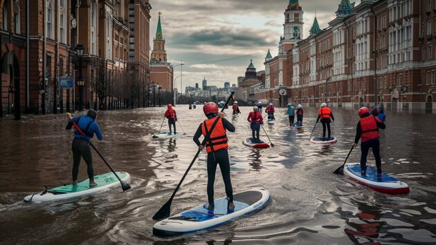 Жители Красногорска освоили сапборды для передвижения по затопленным улицам