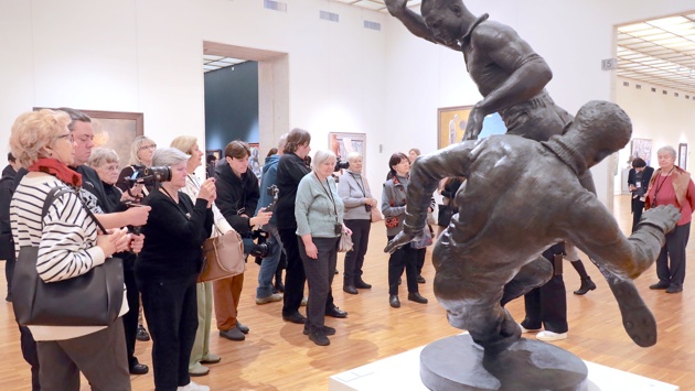 Еще один секрет долголетия - спорт. О нем участникам экскурсии напомнила картина художника Александра Дейнеки "Вратарь". Сам художник занимался спортом, боксировал. В его картине воспета физическая и духовная красота человека.