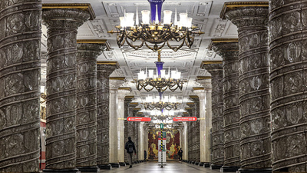 "Адмиралтейская" — самая глубокая станция метро не только в Петербурге, но и всей России. Зал с платформой отделяют от поверхности 86 метров (если измерять до нижней границы путевых рельсов по перпендикуляру).