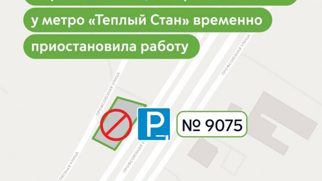 Перехватывающая парковка №9075 возле станции метро «Тёплый Стан» временно не функционирует. Причиной приостановки работы стали мероприятия по благоустройству городской территории, пишет дептранс Москвы в своем Telegram-канале.