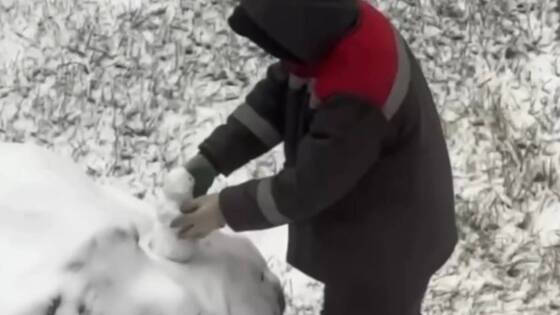 Московский дворник слепил мини-снеговика и попал на видео