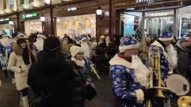 Парад Дедов Морозов прошел на Никольской улице в Москве. Об этом в субботу 27 декабря, сообщает агентство городских новостей «Москва».
