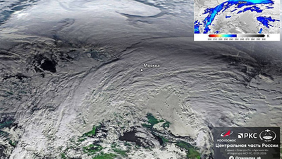 Роскосмос показал снимок надвигающегося на Москву циклона