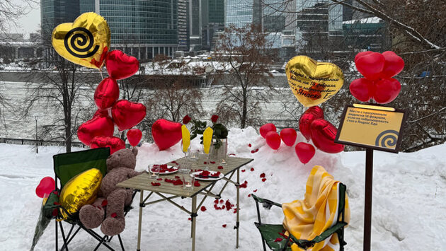 В преддверии 14 февраля в Москве появились необычные инсталляции — импровизированные места свидания для тех, кто не успел забронировать столик в ресторане. Проект «Яндекс Еды» напоминает горожанам, что выбрать место для романтической встречи лучше заранее.