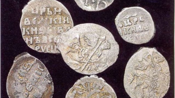До появления своих монет на Руси ходили и римские денарии, и арабские дирхемы, и византийские солиды. Кроме того, расплатиться с продавцом можно было и мехом. Из всех этих вещей и возникли первые русские монеты. Серебряник Первая монета, отчеканенная на Руси, называлась серебряником. Еще до крещения Руси, во времена правления князя Владимира, она была отлита из серебра арабских дирхемов, в которых на Руси начал ощущаться острый дефицит. Причем существовало два дизайна серебряников. Вначале они копировали образ византийских монет солидов: на лицевой стороне был изображен князь, восседающий на престоле, а на оборотной – Пантократор, т.е. Иисус Христос. Вскоре серебряные деньги прошли редизайн: вместо лика Христа на монетах стал чеканиться родовой знак Рюриковичей – трезубец, а вокруг портрета князя помещалась легенда: «Владимир на столе, — а се его сребро» («Владимир на престоле, а это его деньги»). Златник Наряду с серебряником князь Владимир отчеканил и аналогичные монеты из золота – златники или золотники. Они тоже были изготовлены на манер византийских солидов и весили около четырех граммов. Несмотря на то, что по числу их было совсем немного – до сегодняшнего дня дошло чуть более десятка златников – их название прочно засело в народных поговорках и пословицах: мал золотник, да увесист. Мал золотник, да золото весят, велик верблюд, да воду возят. Недоля пудами, доля золотниками. Беда приходит пудами, а уходит золотниками. Гривна На рубеже IX – X веков на Руси появляется уже полностью отечественная денежная единица – гривна. Первые гривны были увесистыми слитками из серебра и золота, которые были скорее весовым эталоном, нежели деньгами – по ним можно было отмерять вес драгоценного металла. Киевские гривны весили около 160 граммов и по форме напоминали шестиугольный слиток, а новгородские гривны были длинным бруском весом около 200 граммов. Причем гривны были в ходу и у татар – на территории Поволжья была известна «татарская гривна», изготовленная в форме ладьи. Свое название гривна получила от женского украшения – золотого браслета или обруча, который носили на шее – загривке или гривке. Векша Эквивалентом современной копейки в древней Руси была векша. Иногда ее называли белкой или веверицей. Существует версия, что наряду с серебряной монетой в обращении находилась выделанная зимняя шкурка белки, которая была ее эквивалентом. До сих пор идут споры вокруг известной фразы летописца о том, что же хазары брали в качестве дани с полян, северян и вятичей: монету или белку «от дыма» (дома). Чтобы накопить на гривну, древнерусскому человеку понадобилось бы 150 векшей. В русских землях ходил и восточный дирхем. Его, а еще и европейский денарий, тоже пользовавшийся популярностью, на Руси называли куной. Бытует версия, что первоначально куна была шкуркой куницы, белки или лисицы с княжеским клеймом. Но есть и другие версии, связанные с иноязычным происхождением названия куны. Например, у многих других народов, которые имели в обращении римский денарий, для монеты существует созвучное русской куне имя, – например, английское coin. Резана Проблему точного расчета на Руси решали по-своему. Например, разрезали шкурку куницы или прочего пушного зверя, тем самым, подгоняя кусочек меха под ту или иную стоимость. Такие кусочки назывались резанами