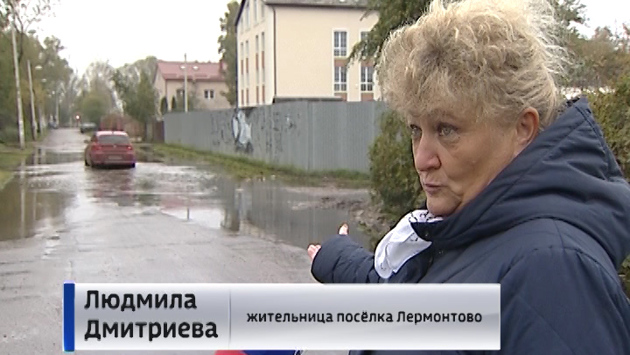 Потоп, обрушившийся на область, дошёл и до Калининграда. Из-за сильных дождей на центральной улице посёлка Лермонтово образовалась огромная лужа. Пешеходы не могут даже дойти до магазина. Яна Щербатая, корреспондент: — Выбраться из посёлка жители могут только на машине или общественном транспорте. Пешеходам дорогу перегораживает вот эта огромная лужа. Пройти по ней можно только в резиновых сапогах. И то в некоторых местах воды по колено. Чтобы хоть как-то обойти затопленную дорогу, жители посёлка протоптали тропинку вдоль забора. Но ходьбу по ней удовольствием не назовёшь. С узкой дорожки можно упасть прямо в канаву. А грязь с обуви люди смывают прямо в луже. Людмила Дмитриева, жительница посёлка Лермонтово: — Я шла в магазин, дошла до этой лужи и я поняла, что не дойду в магазин. Мне пришлось километра полтора идти в обход по Полецкой улице, чтобы попасть в магазин. Затопило и канавы рядом с домами. Вода льётся прямо по электрическим столбам. Как говорят местные жители, возле этого перекрёстка есть старая дренажная система, благодаря которой таких потопов здесь не было. Однако её уже много лет не прочищали. Владимир Невский, председатель территориального общественного управления посёлка Лермонтово: — В начале Ломоносова начали делать закрытый дренаж. Сделали вроде, но там строители раздавили весь дренаж. Обращался в ГидроТехник. Приехали, сфотографировали и на этом дело кончилось. На одном из участков полностью затоплен двор, чтобы выйти из дома, люди надевают резиновые сапоги. Но с наступлением дождей у жителей посёлка появляется ещё одна проблема: конечная остановка в населённом пункте никак не оборудована, нет ни навесов, ни бордюра. — Здесь мы стоим без навеса и ждём транспорт прямо в луже, в этой грязи! Где остановит, туда и бежим. Проблемы с затоплением улиц и дворов в посёлке появляются постоянно, когда идёт дождь или тает снег. Владимир Невский уже не раз обращался во все инстанции, однако результата нет. Сейчас местные жители намерены написать заявление в прокуратуру. Яна Щербатая, Станислав Бердников