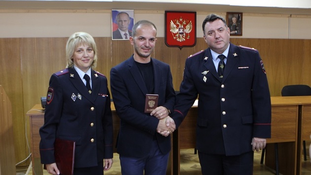 В отделении полиции на Юго-Западе Москвы прошло необычное мероприятие – иностранный гражданин, получающий российского гражданство, принял Присягу. Напомним, с 1 сентября этого года в силу вступил новый закон, подписанный Президентом РФ, согласно которому, принятие присяги для любого иностранного гражданина, получающего российское гражданство, является обязательной процедурой. Торжественное мероприятие состоялось в присутствии начальника территориального подразделения подполковника полиции Юрия Матюхина и начальника отделения по вопросам миграции ОМВД России по району Теплый Стан майора полиции Натальи Филипповой. «Процедура принятия Присяги при вступлении в гражданство России позволит иностранному гражданину прочувствовать важность и особенность данного события в его жизни. Ведь это не просто слова, это данная им клятва уважать и чтить традиции и историю той страны, на верность которой он присягает. Если раньше гражданину достаточно было, собрав полный пакет документов, сдать его, то с принятием присяги это событие приобрело для иностранного гражданина большую серьезность и ответственность», – отметил Юрий Матюхин. «Я добровольно и осознанно принимая гражданство РФ, клянусь соблюдать конституцию и законодательство РФ, права и свободы ее граждан, исполнять обязанности гражданина РФ на благо государства и общества, защищать свободу и независимость РФ, быть верным России, уважать ее культуру, историю и традиции», — сказал новый гражданин России. После чего майор полиции Наталья Филиппова вручила уроженцу ближнего зарубежья паспорт гражданина Российской Федерации, поздравив с принятием присяги на верность России.