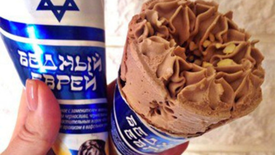 Красноярская компания «Славица» выпустила фирменный рожок под торговой маркой «Бедный еврей» с ароматом чернослива. Об этом сообщает портал «НГС.Новости». Шоколадный вафельный рожок стоит 45 рублей. На обертке изображен государственный флаг Израиля. «Это у нас новинка. Недавно появилось. До этого был "Хохол", а ещё раньше — "Американец". Их у нас часто фотографируют покупатели», — рассказала продавец киоска в Новосибирске. В самой компании от комментариев отказались. Как пишет НГС, в ответ на просьбу прокомментировать выпуск нового мороженого финансовый директор «Славицы» рассмеялась. Председатель еврейской общины Набережных Челнов Леонид Штейнберг заявил, что потребует прекратить производство «Бедного еврея» . «Я попросил своих коллег, чтобы мне привезли образец этого мороженого. Я его завтра увижу и спрошу у производителя: „Вы что, приехали в Набережные Челны, чтобы разваливать у нас толерантность?“ О чем они думают вообще? Если хотите, чтобы не было бедных евреев, тогда дайте денег, чтобы бедных евреев не было! Да где они вообще видели бедных евреев?», — сказал Штейнберг изданию «Бизнес.Online». В случае отказа снять с производства мороженого он обещает обратиться в суд. Также Штейнберга возмутило использование государственного флага Израиля без согласования с посольством этой страны. Компания «Славица» в 2016 году выпустила мороженое «Обамка», однако после обвинений в расизме и антиамериканизме сняла его с производства.