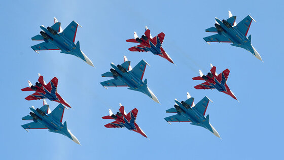 Погода прекрасная, праздник обещает быть ярким и радостным. Воздушный показ продлится более двух часов. В небе свое мастерство покажут четыре лучшие пилотажные авиагруппы России - "Русские Витязи", "Стрижи", "Соколы России" и "Беркуты". Кроме группового пилотажа, "Соколы России" представят ближний маневренный воздушный бой двух истребителей. В финале воздушной части запланировано выступление Су-30СМ и МиГ-29, выстроенных в "Кубинский бриллиант". На поле аэродрома широко представлена экспозиция авиационной техники ВКС, летного обмундирования и средств поисково-спасательных подразделений авиационных частей ВКС. Предусмотрена и культурная программа. На сцену, которая сооружена рядом со взлетно-посадочной полосой, на протяжении дня выйдут коллективы "7Б", "Ундервуд", Владимир Ткаченко и другие артисты. Полный перечень организаторы держат в секрете, но обещают интересные сюрпризы. На подмосковной авиабазе Кубинка сейчас дислоцируется 237-й гвардейский Проскуровский Краснознаменный орденов Кутузова и Александра Невского Центр показа авиационной техники имени И.Н. Кожедуба. Центр стал наследником знаменитого 176-го гвардейского Проскуровского Краснознаменного орденов Кутузова и Александра Невского истребительного авиационного полка. Летчики Центра выполняют следующие задачи: - Демонстрация на территории РФ и за ее пределами авиационной техники, вооружения, оборудования, а также летного мастерства в интересах пропаганды и повышения авторитета ВВС России, повышения конкурентоспособности российской военной авиационной техники и вооружений на мировом рынке. - Подготовка личного состава и техники для выполнения боевых задач. - Сохранение и развитие исторических традиций отечественных ВВС. В состав Центра входят две авиационные группы высшего пилотажа и одна авиационная группа подготовки летного состава и высшего пилотажа. Пилотажные группы "Русские Витязи" и "Стрижи" стали визитной карточкой Военно-Воздушных, а сейчас - Воздушно-Космических Сил России.