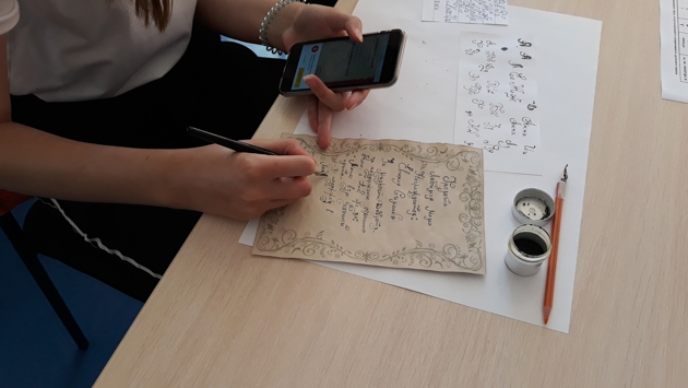 Шшкольники попытались написать текст в свободной форме и свое имя пером и чернилами Цикл мероприятий «Азбука- начало всех начал», посвященный Дню славянской письменности и культуры, прошел 29 и 30 ма я в Центральной библиотеке Щербинки. Сотрудник библиотеки Василиса Короткова рассказала гостям историю двух братьев из города Солуни, которые внесли важный исторический вклад в развитие славянской письменности на Руси. В ходе мероприятия гости узнали о рукописных книгах, которые создавались на пергаменте при помощи гусиных или лебединых перьев. Школьникам был представлен подробный рассказ о создании письма на Руси. Старшему поколению, посетившему мероприятие было рассказано об историческом видение этого праздника. Библиотекарь Наталья Глебова провела увлекательный мастер-класс по древнерусскому письму, где школьники попытались написать текст в свободной форме и свое имя пером и чернилами. Старшим участникам мероприятия было предложено - написать цитаты знаменитых писателей о русском языке, желающие попробовали свои силы в написании древнерусских букв кириллицы и словосочетаний. Также к мероприятию была оформлена тематическая выставка, посвященная Дню Славянской письменности.