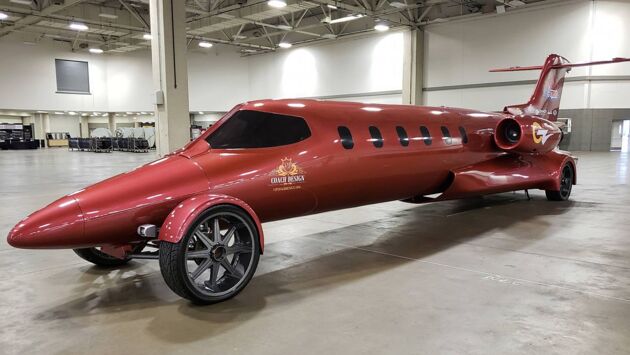 Идея объединить самолет на реактивных двигателях с лимузином появилась еще в 2006 году у двух энтузиастов — Дэна Харриса (Dan Harris) и Фрэнка ДеАнджело (Frank DeAngelo). Однако на проектирование и постройку ушло гораздо больше времени, чем предполагали. Презентовали джет-лимузин только на недавнем фестивале KnowledgeFest в Далласе. Внутри необычного автомобиля установлены световые панели, колонки, экраны и большое количество сидений — все для свадебной вечеринки. Спереди находится одно водительское место с панелью управления, оборудованной экранами, которые позволяют видеть, что происходит сбоку и сзади лимузина. Дверца у автомобиля всего одна, как у стандартного джета. Автомобиль окрашен в цвет «красный металлик», капсулы с двигателями подсвечиваются. В целом лимузин выглядит красиво. Однако настоящие реактивные двигатели в гибриде не установлены — вместо них используется обычный восьмицилиндровый двигатель. Возможно, в будущем инженеры заменят их на электродвигатели. ©Limo-Jet ©Limo-Jet ©Limo-Jet ©Limo-Jet ©Limo-Jet ©Limo-Jet Длина джета-лимузина — почти 13 метров, только один хвост занимает треть от этой длины. Вся конструкция весит около 5,5 тонны. Как отмечают создатели, при езде у лимузина даже слегка колеблются колеса диаметром 70 сантиметров. Сейчас Jetsetter ищет спонсоров, чтобы обеспечить лимузину коммерческое применение, сдавая его в аренду для различных мероприятий. Стоимость такого удовольствия, конечно, будет запредельной. Но ведь платить есть за что, не так ли?