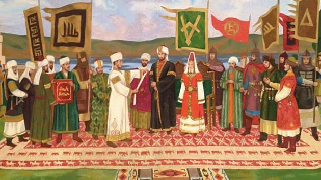 Ислам появился в Росси давно. Первой территорией, принявшей веру Мухаммеда, стали земли Дагестана, которые в 651 году захватили войска арабского Халифата. Первая мечеть в России была построена в Дербенте в VII веке. Однако в Поволжье ислам появился значительно позднее. Рассказываем, как это было. Зарождение ислама в Поволжье Многие российские историки, например, Татищев, полагали, что мусульманами татары и другие тюркские народы берегов Волги стали только в XV веке, а до этого ислама не знали. Эти сведения ошибочны из-за критического недостатка в тогдашней российской исторической науки каких-либо фактов о той эпохе. Тот же Татищев полагал, что в Волжской Булгарии — стране, от жителей которых и произошли современные татары, башкиры и чуваши, исповедовали брахманизм. С точки зрения современной науки это совершенно абсурдно. На самом деле ислам появился в Поволжье довольно рано: в IX-X веках, и стал государственной религией Волжской Булгарии в 922 году. Эта страна имела тесные связи с Арабским Халифатом, Хорасаном и державой Саманидов, поэтому во многом попадала под его влияние. Арабские проповедники часто посещали страну. Поэтому в конце IX — начале X веков булгарские купцы и знать интересовались исламом и переходили в него. Впрочем, в Булгарии активно интересовались и другими религиями — например, там были и православные храмы. При этом основная масса простолюдинов продолжала исповедовать степное язычество предков — тенгрианство. Булгарский хан Алмыш тогда пытался объединить все булагрские племена и общины, и освободиться от власти хазар-иудеев. Хазарское иго было унизительным: например когда хазарский каган узнал о красоте дочери булгарского хана Аламыша, он потребовал отдать ее себе в жены, и получив отказ, послал в Булгарию карательную экспедицию. Принятие ислама булгарами Освобождение булгар от хазар удалось во многом благодаря исламу. Во-первых, хан Алмыш консолидировал с помощью ислама булгарскую знать и интеллигенцию. Во-вторых, когда Алмыш решил сделать ислам официальной религией Булгарии, он обратился за помощью в Багдад, к абассидскому халифу ал-Муктадиру. Халиф был заинтересован в распространении и поддержании ислама. Арабы не бросили в беде новообращенных единоверцев, и послали на берега Волги большое посольство из ученых, проповедников и строителей. 21 мая 922 года — дата прибытия этого посольства в Булгар, и считается датой обращения татар в ислам. В 986 году, когда князь Владимир выбирал новую веру для Руси, исламская инициатива исходила именно из Волжской Булгарии. Но, как это было и на Руси с православием, простые жители Булгарии не спешили принимать новую веру. Многие историки, например, И.Л. Измайлов, отмечают, что булгарское общество на первых парах неспешной исламизации оставалось языческим, но с легким исламским флером — об этом свидетельствует множество археологических находок. Однако с 922 года Булгария стала полноправным исламским государством, была признана как равный партнер всеми мусульманскими державами. После включения в исламскую цивилизацию, в Булгарии начинается бурное развитие исламской науки и культуры, и новая религия начинает все активнее распространяться среди простых людей. Ислам и монголы В первой половине XIII в. монголы получают контроль над всем Поволжьем. В 1236 году войска монгольского
