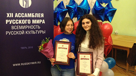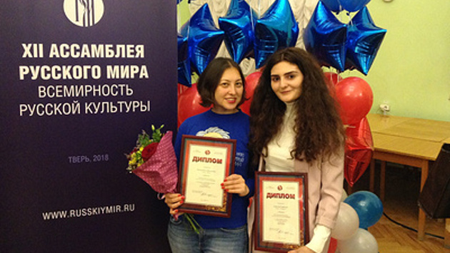 ТВЕРЬ, 2 ноября. /ТАСС/. Журналисты информационного агентства ТАСС Бэлла Волкова и Ася Асрян стали призерами III Международного конкурса для молодых журналистов "Со-Творение". Церемония награждения прошла в Тверской областной универсальной научной библиотеке им А. М. Горького, передает корреспондент ТАСС. Награды призерам и лауреатам конкурса вручил председатель правления фонда "Русский мир", председатель комитета Госдумы по образованию и науке Вячеслав Никонов. Нынешний конкурс приурочен к объявленному в России Году добровольца и волонтера. В номинации "Инициатива", посвященной репортажам и эссе, освещающим темы социальных инициатив и добровольчества, победила Ольга Алферова (издательский дом "Мир Белогорья") за материал "Космос внутри. Как понять и принять ребенка с аутизмом". Второе место жюри присудило ставропольскому журналисту информационного-познавательного портала "Это Кавказ", являющегося проектом ТАСС, Асе Асрян за статьи "Найти человека" и "Пикник на Обочине". Третье место заняла Екатерина Булгакова из Узбекистана с материалом "Добрые и зеленые находки. Как авоськи или экокожа помогают людям с особенностями здоровья". Лауреатом в номинации "Открывая Россию" стала Анна Дёрова из Благовещенска за статью "Приамурье мелового периода: как амурский ученый совершил мировую сенсацию и почему динозавры не стали брендом региона". Второе место присудили журналисту информационного агентства ТАСС Бэлле Волковой из Москвы - ее отметили за материалы "В Россию, в глушь...", "Последние жгоны" и др. Третье место заняла Ксения Кабанова из Иваново. Диплом третьей степени в номинации "Русский театр за рубежом" присудили Роману Бондарчуку из Ташкента за статью "Песня без слов" о детской школе-интернате для глухих детей. Второе место заняла Ольга Смолякова из Белоруссии. По решению жюри первое место в этой номинации не присудили никому. Почетные призы и дипломы конкурса получили Мария Репина (Воронеж), Валерия Хлебникова (Певек). Их отметили за материалы, направленные на сохранение культуры и традиций народов России. Также награды вручили членам экспертного совета - Алле Березовской (Латвия) и Евгении Логуновской (Белоруссия). Им вручили сертификаты на путешествие по России. О конкурсе и Ассамблее Конкурс для молодых журналистов "Со-Творение" фонда "Русский мир" проводится в третий раз. Он проходит в целях развития у молодых людей творческих и коммуникативных способностей, поддержки юношеского стремления к соревнованию, взаимодействию и обмену знаниями; популяризации русского языка как важного инструмента международного и межнационального общения. Всего в оргкомитет конкурса этого года поступило почти 200 работ из девяти стран мира и 41 региона РФ. Оценку работ проводил экспертный совет конкурса. Ассамблея Русского мира - это международный форум, который ежегодно проводится фондом "Русский мир" в разных российских городах накануне Дня народного единства, в 2017 году мероприятия прошли в Нижнем Новгороде. В этом году XII Ассамблея проходит 1-3 ноября в Твери и объединяет около 600 участников из 69 стран мира. Темой форума стала "Всемирность русской культуры". Фонд "Русский мир" создан по указу президента РФ Владимира Путина 21 июня 2007 года. Занимается популяризацией русского языка и культуры, поддержкой программ изучения, сохранения и развития 