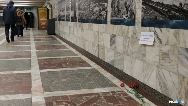 Сегодня, 30 января, в переходе метро на площади Ленина появилась табличка в память о дедушке с баяном — кто-то прикрепил к стене лист бумаги с текстом «Светлая память баянисту Владимиру Андреевичу». Ниже ручкой дописали «Простите нас!!!». Табличку повесили на стену в том месте, где Владимир Андреевич обычно сидел и исполнял популярные советские мелодии. О смерти баяниста Владимира Веретенникова стало известно 25 января — у музыканта остановилось сердце. С вечера 25 января неравнодушные новосибирцы стали приносить и оставлять на этом месте цветы.