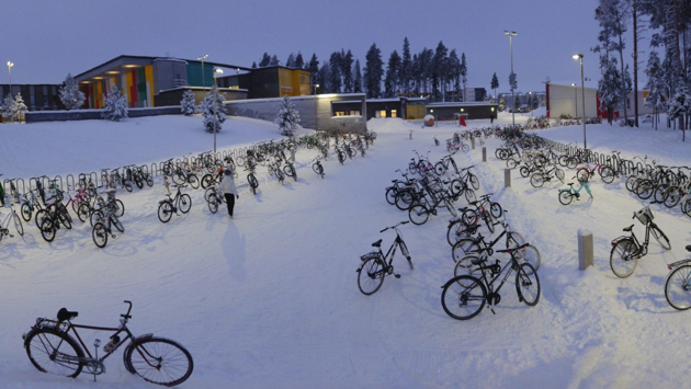 В небольшом городе Оулу на западе Финляндии с населением чуть больше 200 тысяч человек дети даже в -17 спокойно ездят в школу на велосипедах. Причем явление это достаточно распространенное, рассказал инженер по благосостоянию городов агентства Navico Ltd Пекка Тахкола. Недавно он сфотографировал парковку для велосипедов в местной школе Metsokangas. Несмотря на то, что на улице был серьезный мороз, она была забита до отказа велосипедами. Тахкола считает, зимняя езда на этом экологичном «транспорте» вполне возможна при правильной планировке и инфраструктуре городского пространства. Дорожка в парке Åströminpuisto в городе Оулу, Финляндия. Источник фото: Публичное достояние Некоторым родителям может показаться странным и опасным, что их дети катаются на велосипедах, вдыхая ледяной воздух северной зимы. В Финляндии, это совершенно нормально и даже считается полезным для здоровья. «Мы организовали ознакомительную поездку для участников из южной Финляндии, чтобы они увидели, как ехать в школу на велосипеде в нашем городе. Мы посетили пару школ, поговорили с местными учителями и директорами. Я уверен, что школа Metsokangas — одна из лучших, в этом смысле. Это определенно не единственная, и в Оулу есть множество школ, где большинство детей ездят на велосипедах в школу», — сказал Пекка Тахкола. Школа Metsokangas является рекордсменом по количеству учеников, использующих альтернативный транспорт, чтобы приехать утром на занятия. Около 1000 из 1200 студентов приезжают на велосипеде каждый день, даже зимой. От 100 до 150 учеников ходят пешком. Остальные добираются на лыжах или на машине. Учащимся от семи до 17 лет. «Я тоже ездил на велосипеде в школу, когда был ребенком, даже в -30. Ощущается также, как -17», — считает инженер. В Оулу, как правило, снег выпадает в ноябре и лежит до апреля, причем морозы там бывают достаточно суровые, и метели серьезные. А так как город находится на берегу Ботанического залива, там еще и довольно высокая влажность. Чтобы жители города не пробирались через сугробы и не пересаживались на машины, велосипедные и пешеходные дорожки поддерживаются в таком идеальном порядке, что велосипедистам даже не нужны специальные шины или снаряжение для проезда по городу. Кроме того, в городе много велосипедных дорожек, которые не мешают пешеходам и автомобилистам и существенно сокращают путь из точки «А» в точку «Б». Когда Тахкола опубликовал фотографию в Twitter, он был ошеломлен ответами, в основном из-за рубежа. Люди сетовали на то, что в их странах такое невозможно. Но он признает, что не все школы в Финляндии такие прогрессивные. «Мы также по-прежнему сталкиваемся с проблемами с родителями, которые хотят возить своих детей в школу. В этой школе мы их убедили, но в некоторых других областях у нас больше проблем», — подвел итог инженер. Пользователи просили им показать финские сани и жаловались, что их правительтва не так активно популярязируют спорт. «Всего месяц назад сердитый велосипедист в Мадриде сказал мне: „зачем нужны эти велодорожки, что произойдет, если пойдет снег, дожди или станет холодно? Никто не будет использовать велосипедные дорожки“. Конечно, я посмеялся над ним, потому что это действительно смешно», — написал комментатор поста. Велосипеды в России? При практически равных погодных условиях в средней полосе России и Финляндии, в нашей стране эко