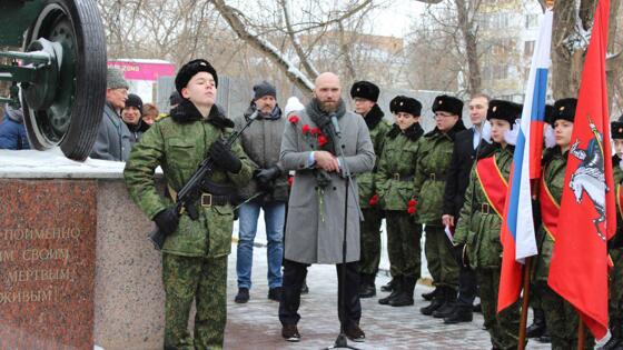 У памятника "Пушка" провели торжественный митинг ко Дню Защитника Отечества