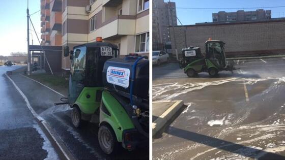 Во дворе ЖК «Высота» на ул. Сергея Преминина, 10б, сегодня прошла генеральная уборка. Специализированная организация провела мойку проезжей части и тротуаров водой с использованием специального дорожного шампуня. Всего в уборке было задействовано 4 единицы техники и 4 дворника. Работа шла больше трех часов. На тротуарах прибирались так называемые маневренные «головастики», проезжую часть чистили «ЗиЛ» и трактор. Сначала асфальт проливали водой, далее выходила на работу «щетка». Скопившуюся у лотков грязь лопатами убирали дворники. После этого поверхность покрывали специальным немецким шампунем, финишировали процесс еще одни «водные процедуры». «Мы заранее оповестили автомобилистов о планирующейся уборке, поэтому сегодня почти не было припаркованных машин. Всего у дома ежедневно оставляют более 300 транспортных средств. После мойки дворники протерли скамейки, урны – все то, что могло запылиться. Мойку с шампунем на территории вокруг дома мы проводим уже во второй раз. Прежде всего, это необходимо для того, чтобы очистить асфальт от соли, грязи, которые скопились за зиму. День выбрали не случайно – так как сегодня Чистый четверг», - рассказал председатель ТСЖ дома на ул. Преминина, 10б, Михаил Козырев. В планах на следующую неделю – провести чистку ливневки с помощью «Крота». 29 апреля газоны обработают против клещей. За чистоту у дома в прошлом году председатель ЖК «Высота» Михаил Козырев получил звание лучшего управленца многоквартирного дома Вологды. В 16-этажке на С. Преминина, 10б, дружно живут около 1500 человек.