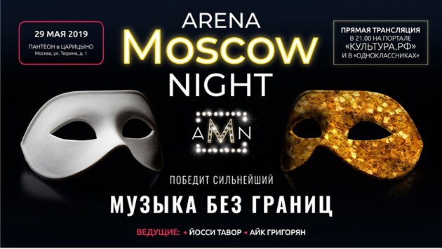 Во втором сезоне Arena Moscow Night репертуар существенно расширился. Теперь артисты исполняют не только арии из классических опер, но и фрагменты оперетт и мюзиклов. Создатели проекта поставили перед собой задачу показать оперу, оперетту и мюзикл в принципиально новом формате, чтобы открыть удивительный мир музыкального театра для широкой аудитории. Кроме того, участие в Arena Moscow Night дает шанс талантливым молодым исполнителям заявить о себе, а зрители получают возможность познакомиться со знаменитыми произведениями прославленных авторов. Зрителей ждут непредсказуемые джем-сейшны, которые соединят в дуэты не знакомых ранее друг с другом исполнителей – как маститых деятелей искусства, так и молодых артистов. В паузах между музыкальными номерами именитые гости концерта пообщаются со зрителями, расскажут о себе и о музыкальных произведениях. За ходом вокального конкурса можно будет следить онлайн на сайте Arena Moscow Night, на портале "Культура.РФ" и в соцсети "Одноклассники", где организованы прямые трансляции концертов Arena Moscow Night. На сайте проекта также можно ознакомиться с записями уже прошедших выступлений. Второй сезон завершится в декабре 2019 года финальным гала-концертом, на котором выступят лучшие участники проекта и будут присутствовать все члены жюри. Национальный фонд поддержки правообладателей открыл проект Arena Moscow Night в марте 2018 года. Его основная цель – популяризация жанра оперы и музыкального театра в целом, ознакомление широкой аудитории с лучшими произведениями классиков. Вокалисты и музыканты выходят на сцену, чтобы испытать себя в "вокальной битве", а почетные гости в финале выбирают из нескольких артистов одного самого лучшего, которому предстоит принять участие в финальном гала-концерте Arena Moscow Night. В конкурсной программе Arena Moscow Night принимают участие молодые, но уже профессиональные артисты оперы, солисты музыкальных театров из разных городов. Так, участниками прошедших концертов стали солисты Московского театра "Новая Опера" им. Е.В.Колобова, Московского академического музыкального театра им. К.С.Станиславского и В.И.Немировича-Данченко, Пермского театра оперы и балета им. П.И.Чайковского, Марийского государственного театра оперы и балета им. Э.Сапаева, Башкирского государственного театра оперы и балета и других театров. В качестве специальных гостей на сцене выступили певец и композитор Петр Налич, заслуженный артист РФ Андрей Батуркин, французский пианист и композитор Николя Челоро, солист Гамбургской оперы Владимир Байков, квартет "StradiВаленки" и другие известные исполнители и творческие коллективы. Онлайн-трансляции концертов Arena Moscow Night смотрят сотни тысяч человек, и с каждым новым этапом проекта число зрителей растет. Партнерами проекта выступают портал "Культура.РФ", сайт "Одноклассники", музей-заповедник "Царицыно", зал для торжеств "Пантеон" в "Царицыно", компания Kawai. Продюсер проекта – Мария Панкратова.