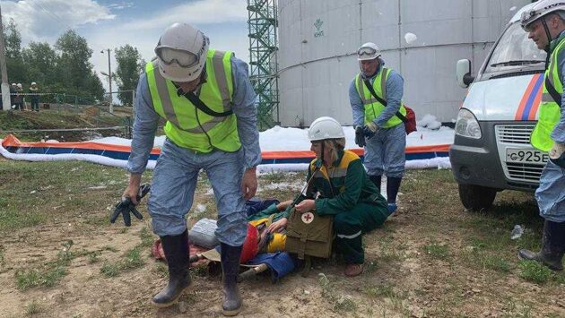 «Красноярскнефтепродукт» провел запланированные учения на нефтебазе филиала «Восточный» в Канске. В ликвидации «аварии» участвовали сотрудники КНП, пожарные и спасательные службы. Корреспондент Sibnovosti.ru следил за масштабной операцией на востоке края. В 13:00 на нефтебазе сработала тревога и началась экстренная эвакуация сотрудников. По легенде, произошло серьезное ЧП – лопнул шов резервуара, произошла утечка топлива. В первые минуты аварии самые важные действия должны выполнить именно сотрудники нефтебазы — часть работников обязаны эвакуироваться, остальные — создать штаб по ликвидации утечки. «При возникновении ЧС самое главное не растеряться и вовремя подать сигнал — от этого зависит и ущерб, и количество жертв. На мой взгляд, оповещение прошло в штатном режиме — мы уложились в 8 минут. Такие мероприятия очень важны — сотрудники КНП должны в экстремальной ситуации действовать правильно и не растеряться. Мы всегда прорабатываем разные сценарии ЧС», — отметил главный инженер филиала «Восточный» КНП Владимир Венедиктов. Первым делом участникам операции необходимо оцепить территорию разлива нефтепродуктов сигнальной лентой и отключить электроэнергию. От малейшей искры аварийный резервуары с тоннами дизельного топлива могут взорваться, поэтому место разлива покрывается специальной пеной, а соседние резервуары охлаждаются водой. Затем в дело вступает специалист, который должен проверить уровень содержания паров нефтепродуктов в воздухе. В это время двое сотрудников в защитной экипировке запустили процесс слива топлива из аварийного резервуара. На этом этапе сотрудники КНП выполнили все действия правильно — эстафету по ликвидации ЧС передали городским пожарным. На этом операция не заканчивается. Дежурный доложил начальнику штаба, что с территории нефтебазы не эвакуировался один сотрудник. Не исключено, что мужчина пострадал и сейчас срочно нуждается в медицинской помощи. Чтобы найти работника, на место вызвали спасателей. Пострадавшего обнаружили на крыше резервуара, его спасение заняло не более 20 минут. «КНП — одно из крупнейших предприятий за Уралом. У нас 14 таких нефтебаз, а это особо опасные производственные объекты. Персонал нужно постоянно тренировать — чем больше мы учимся, тем больше мы застрахованы от тяжелых последствий ЧС», — отметил гендиректор КНП Борис Золотарев. Спасатель на веревке спустился к месту утечки. Залатать бак удалось с помощью магнитного пластыря. Начальнику штаба доложили: «Утечка топлива устранена!». «В первую очередь, мы должны были спасти жизнь человека. Вторая задача — ликвидировать утечку нефтепродукта. Должен признать, с КНП уже проводим не первые учения – сотрудники компании действуют грамотно и, главное, без лишней суеты выполняют необходимые команды, а это немаловажно в случае ЧС», — сказал во время спасательной операции Павел Дербин, начальник профессионального аварийно-спасательного образования. Пострадавшего на земле встречали медики, ему оказали первую помощь. В целом, операция по ликвидации ЧС на КНП заняла не более часа, что соответствует необходимым нормативам. Фото: АО «Красноярскнефтепродукт» По материалам АО «Красноярскнефтепродукт»