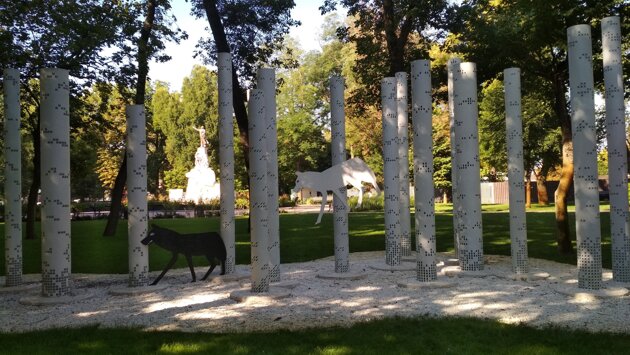 В Краснодаре в Вишняковском сквере были замечены картонные черно-белые фигуры волков. Установили их рядом с арт-объектом "Столпы", открытым в феврале этого года. Кто был автором этого перформанса – неизвестно. Сообщение о том, что в сквере завелись хищники, появилось в социальных сетях. По мнению интернет-пользователей черно-белые волки добавляли изюминку "Столпам" с нанесенными на них балалайками. Сейчас, отмечает автор фото, волков уже убрали из парка.