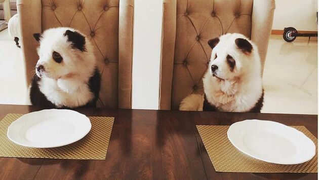 Что-то новое: в китайском кафе красят щенков, чтобы они выглядели как панды
