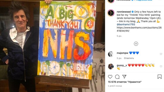 Гитарист рок-группы "The Rolling Stones" Ронни Вуд начал продажу портреты других участников коллектива (Мика Джаггера, Кита Ричардса, Чали Уоттса). Он писал их несколько лет. Музыкант принимает участие в благотворительной акции "The other art fair". Ее проводит лондонская онлайн-галерея Saatchi Art, чтобы собрать средства для тех, кто пострадал из-за пандемии коронавируса. Специально для этой акции Ронни Вуд нарисовал плакат с использованием акриловых красок и чернил, где написал слова благодарности сотрудникам Национальной службы здравоохранения.