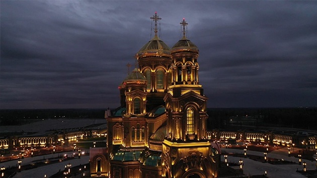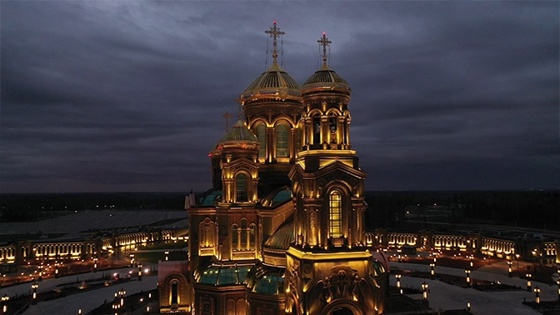 Главный храм ВС РФ ночью: кадры с коптера