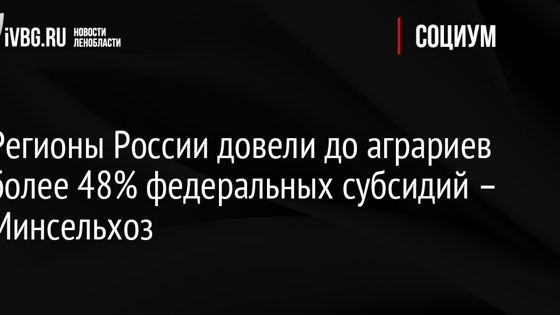 Регионы России довели до аграриев более 48% федеральных субсидий – Минсельхоз