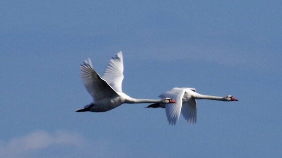 В Кандалакшском заповеднике Мурманской области появились лебеди-шипуны - очень редкие птицы. На Кольском полуострове они не гнездятся. В Заполярье их можно встретить лишь на пролете, когда "гости" на короткое время задерживаются здесь, чтобы подкормиться и отдохнуть. Сделать уникальный снимок лебедей-шипунов в полете удалось инспектору заповедника Василию Вощикову. - За последние десять лет были всего одна или две встречи с лебедями-шипунами, - рассказала корреспонденту "РГ" заместитель директора по научной работе Кандалакшского заповедника Екатерина Толмачева. - Такие встречи, как правило, случайны. Не исключено, что они появляются чаще, просто мы их встречаем не всегда. Кстати, лебеди-"аборигены" в Мурманской области все же есть. Здесь гнездится лебедь-кликун, отметила Екатерина Толмачева. Это те самые моногамные птицы, которые образуют пары на всю жизнь. Они строят гнездо в недоступных для хищников месте - среди топи болот, на кочках и "островках" из растений. Размеры гнезда настолько велики, что некоторые из них можно принять за небольшой островок - диаметр доходит до 1,5 метров, а высота до 40-50 сантиметров. Справка "РГ" Лебедь-шипун обитает от юга Скандинавии до Турции и Ирана, дельты Волги в Юго-Западной Сибири, Казахстана и Забайкалье. Размах крыльев птицы около 2,5 метров, вес - от 8 до 13 килограммов. Шея длинная. Окраска взрослой особи белоснежная, основание и кончик нароста шишки на клюве черного цвета, остальная часть клюва красная. Лебедь-кликун обладает характерной "лебединой" внешностью: продолговатое тело, длинная шея, длинный жёлтый клюв с черным кончиком без характерного нароста у основания, полностью белое оперение, черные ноги. Занесен в Красную книгу Мурманской области. Кстати, легенду о "лебединой песне" связывают именно с лебедем-кликуном, звуки голоса которого кажутся жалобными. Кликун - рекордсмен Книги рекордов Гиннеса по высоте перелетов: стаи лебедей были замечены на высоте более 8000 метров.