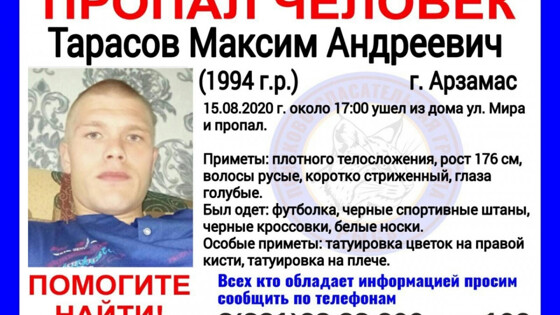 26-летний Максим Тарасов пропал в Арзамасе