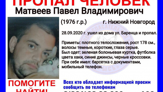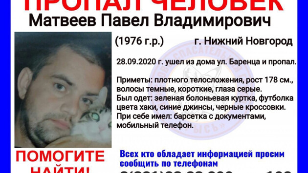44-летний Павел Матвеев пропал в Нижнем Новгороде