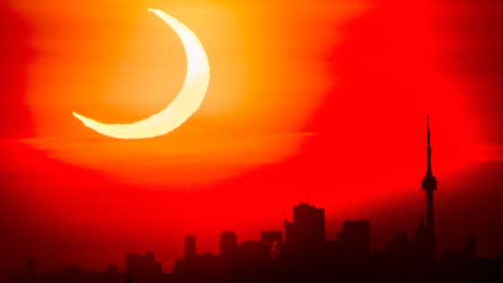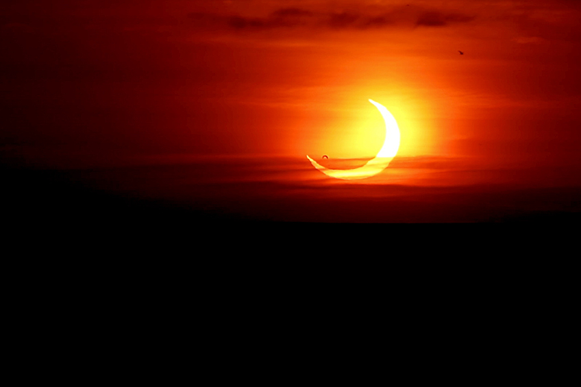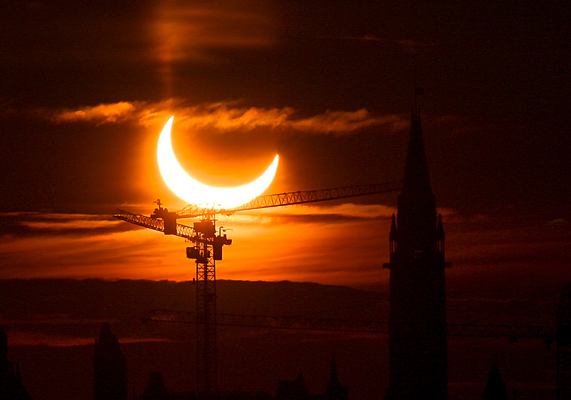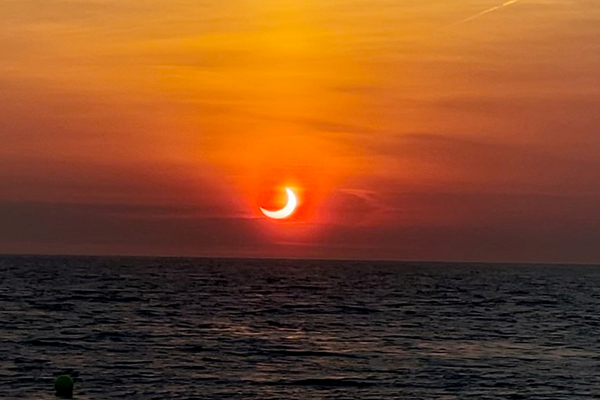В четверг, 10 июня, в некоторых частях мира и в России произошло солнечное затмение. Самая полная кольцеобразная фаза затмения была видна на Чукотке, в канадской провинции Онтарио, в Гренландии и на Северном полюсе, где Луна закрыла Солнце на 91 процент. На остальной территории Земли Солнце выглядело как надкушенное яблоко. Всего затмение над Россией продолжалось 3 минуты 37 секунд. Об этом сообщает Lenta.ru.