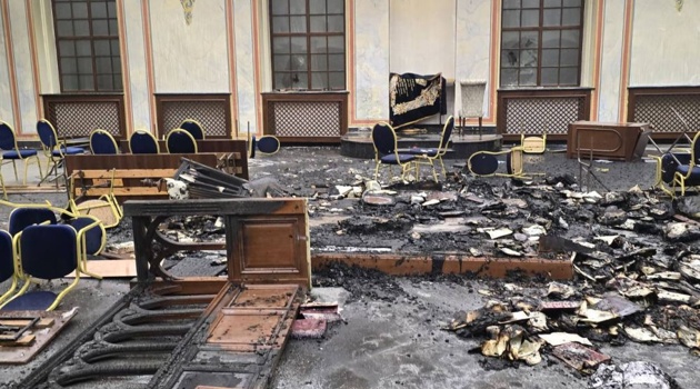 Последствия поджога Садгорской синагоги в украинских Черновцах сняли на фото