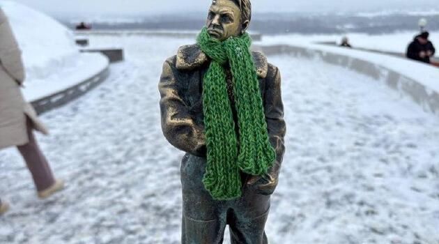 Нижегородцы укутали миниатюру памятника Чкалову в шарф