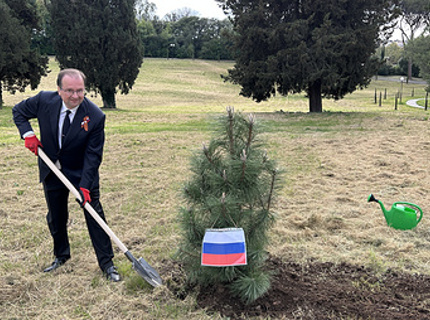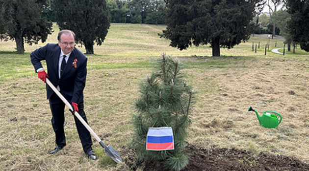 В посольстве РФ в Риме высадили Аллею памяти и заложили монумент Героям Победы