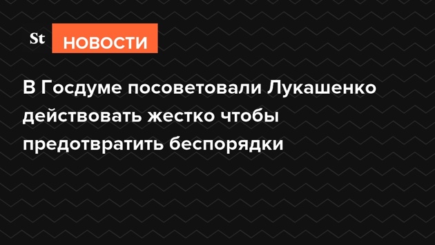 В Госдуме призвали президента Белоруссии Александра Лукашенко действовать жестко, чтобы предотвратить «майдан» и не допустить украинского сценария. Об этом заявил глава комитета по делам СНГ Леонид Калашников. Сенатор Олег Мельниченко заявил, что белорусские протесты срежиссированы на Западе.