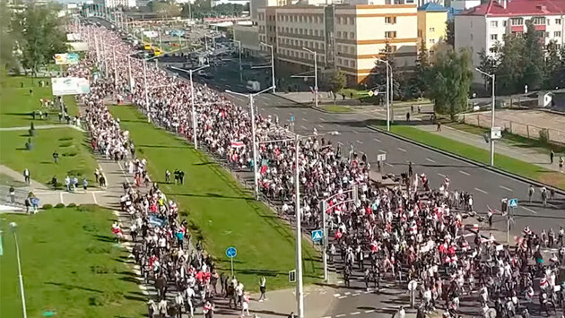 МИНСК, 13 сентября. /ТАСС/. В ходе пресечения акций протеста в Минске белорусские силовики ограниченно применяли спецсредства, в том числе слезоточивый газ. Об этом сообщил корреспондент ТАСС, присутствовавший на месте событий. Так, на улице Мельникайте примерно в 14:40 на проезжей части две цепи ОМОНа блокировали протестующих, распылили слезоточивый газ и начали задержания. Кроме того, как подтвердило МВД, на проспекте Победителей один из силовиков сделал предупредительный выстрел в воздух из помпового ружья. В то же время правоохранительные органы отвергают сообщения о применении светошумовых гранат при разгоне протестующих в районе "Дрозды", хотя в соцсетях появились видеокадры, где слышны громкие хлопки и видны облачка разрывов. Протестная акция в Минске собрала в воскресенье несколько десятков тысяч человек. В столице, по данным МВД, были задержаны более 400 человек. Манифестации прошли также в Гродно, Могилеве, Барановичах, Бресте и Витебске. В Бресте для освобождения проезжей части от демонстрантов силовики применяли водомет, также проводились задержания участников протеста.