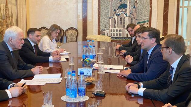 18 апреля 2023 года состоялась встреча губернатора Нижегородской области Глеба Никитина, прибывшего в Минск во главе делегации региона, с чрезвычайным и полномочным послом РФ в Республике Беларусь Борисом Грызловым. На встрече присутствовали заместитель губернатора Нижегородской области Юрий Ильин, заместитель председателя правительства региона Игорь Зотов, директор департамента внешних связей Ольга Гусева, представитель МИД России в Нижнем Новгороде Сергей Малов. «У нас очень много направлений совместной взаимовыгодной кооперации в сфере агропромышленного комплекса, высоких технологий, науки и образования, мемориальной деятельности. Сегодня с Романом Александровичем Головченко обсуждали дополнительные возможности развития сотрудничества», — сказал Глеб Никитин. Губернатор Нижегородской области добавил, что в ноябре 2023 года в столице Приволжского федерального округа пройдет очередное заседание совета делового сотрудничества, уже 18‑е по счету. «Это в очередной раз показывает, что качество наших контактов — на самом высоком уровне. Ожидаем участия представительной делегации из Республики Беларусь во главе с заместителем премьер-министра страны Анатолием Александровичем Сиваком. С помощью таких встреч и визитов мы строим траекторию развития наших связей, максимально отвечающую российско-белорусскому сотрудничеству в рамках Союзного государства в целом», — отметил Глеб Никитин.