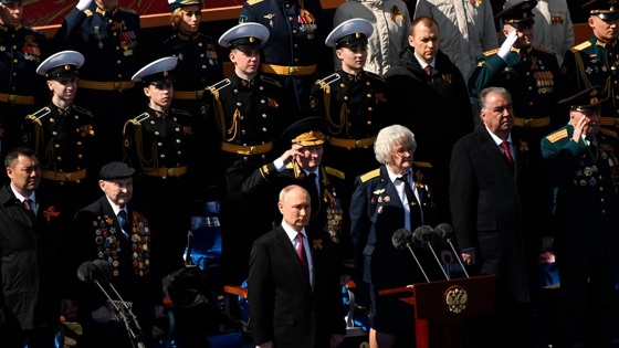 Путин завершил свою торжественную речь словами: «За Россию, за наши доблестные Вооруженные силы, за Победу. Ура».