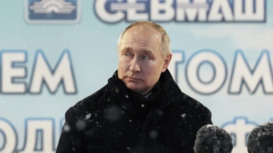11 декабря в Северодвинске президент участвовал в церемонии поднятия флага на двух новых атомных подводных лодках ВМФ России — стратегическом ракетоносце «Александр III» и многоцелевой АПЛ «Красноярск». Погода в городе сегодня была холодной: до −17 градусов мороза со снегом и ветром.